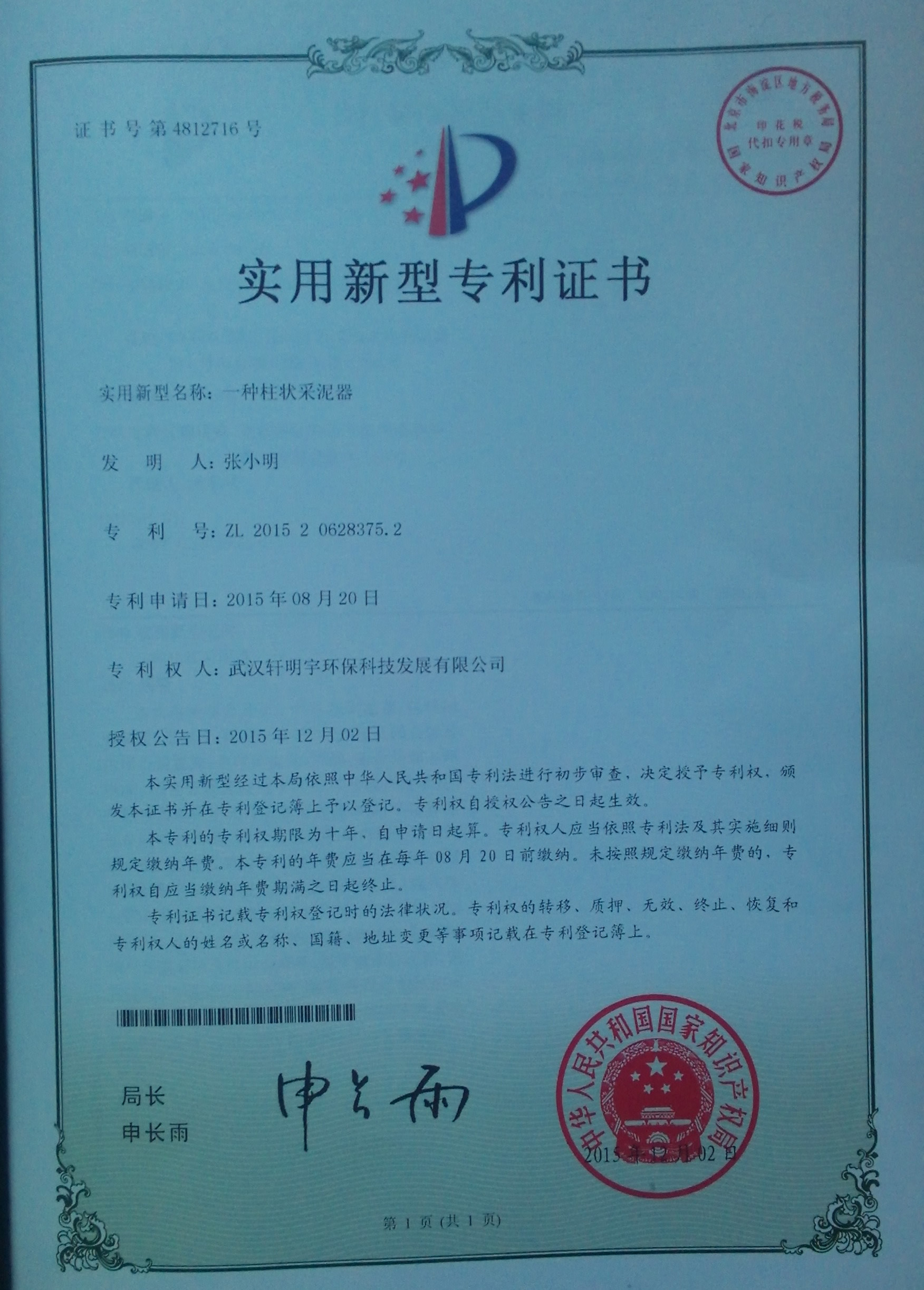 公司自主知識產權的專利已經提交5項,其中3項已經審核通過,1項已經頒發證書。