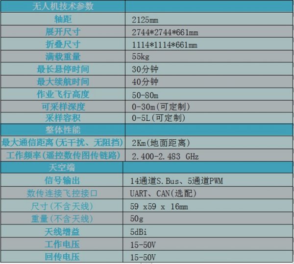 水、湖泊水、海水水庫、及其他液體樣本。可搭載水質監測儀器和其他水體監測設備。
